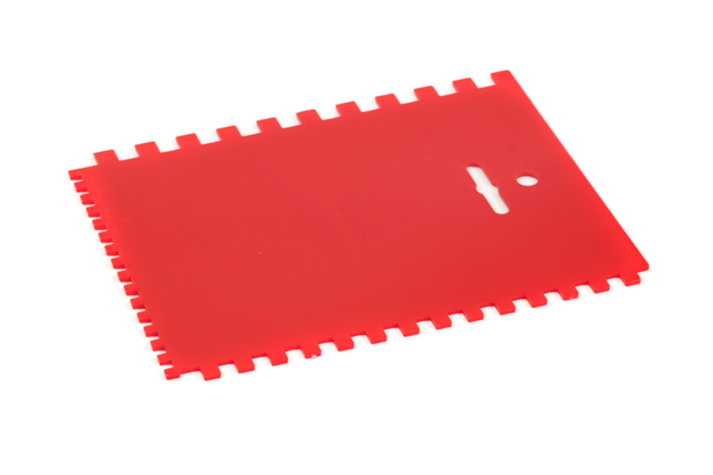 Je gebruikt de lijmkam om lijm gelijkmatig te verdelen over de lijmband. Dit gereedschap zorgt voor een nette en overzichtelijke verwerking. Het maakt het aanbrengen van lijm makkelijker, waardoor je een sterke hechting krijgt. Een onmisbaar hulpmiddel bij het verlijmen van kunstgras.